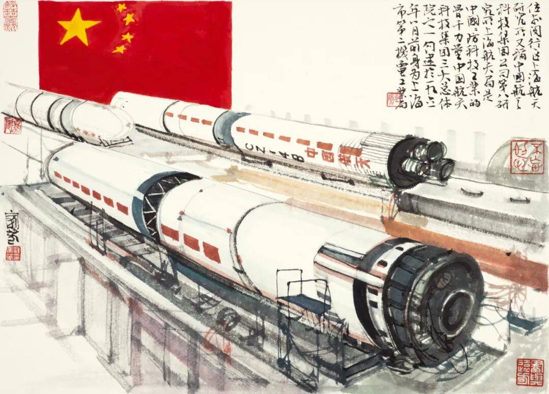巨幅水墨《上海》将江南文化、红色文化与海派文化交融于城市意象之中;《闵行十二景》以细腻笔触展现黄浦江畔的人文烟火;《五岳归来》以苍劲笔墨勾勒华夏风骨;《画徐霞客游记》则以行走的笔触串联古今山水情怀。