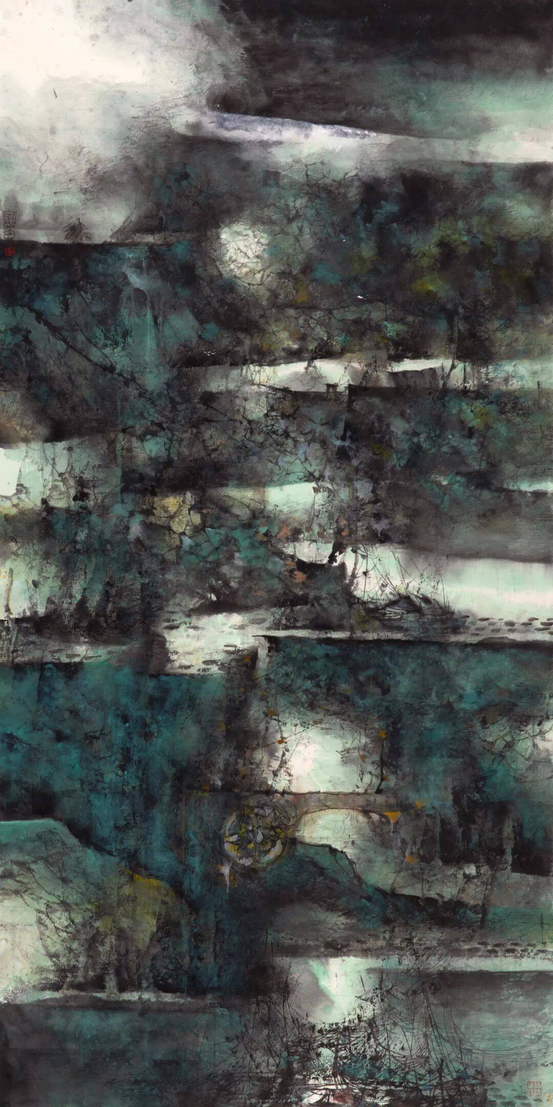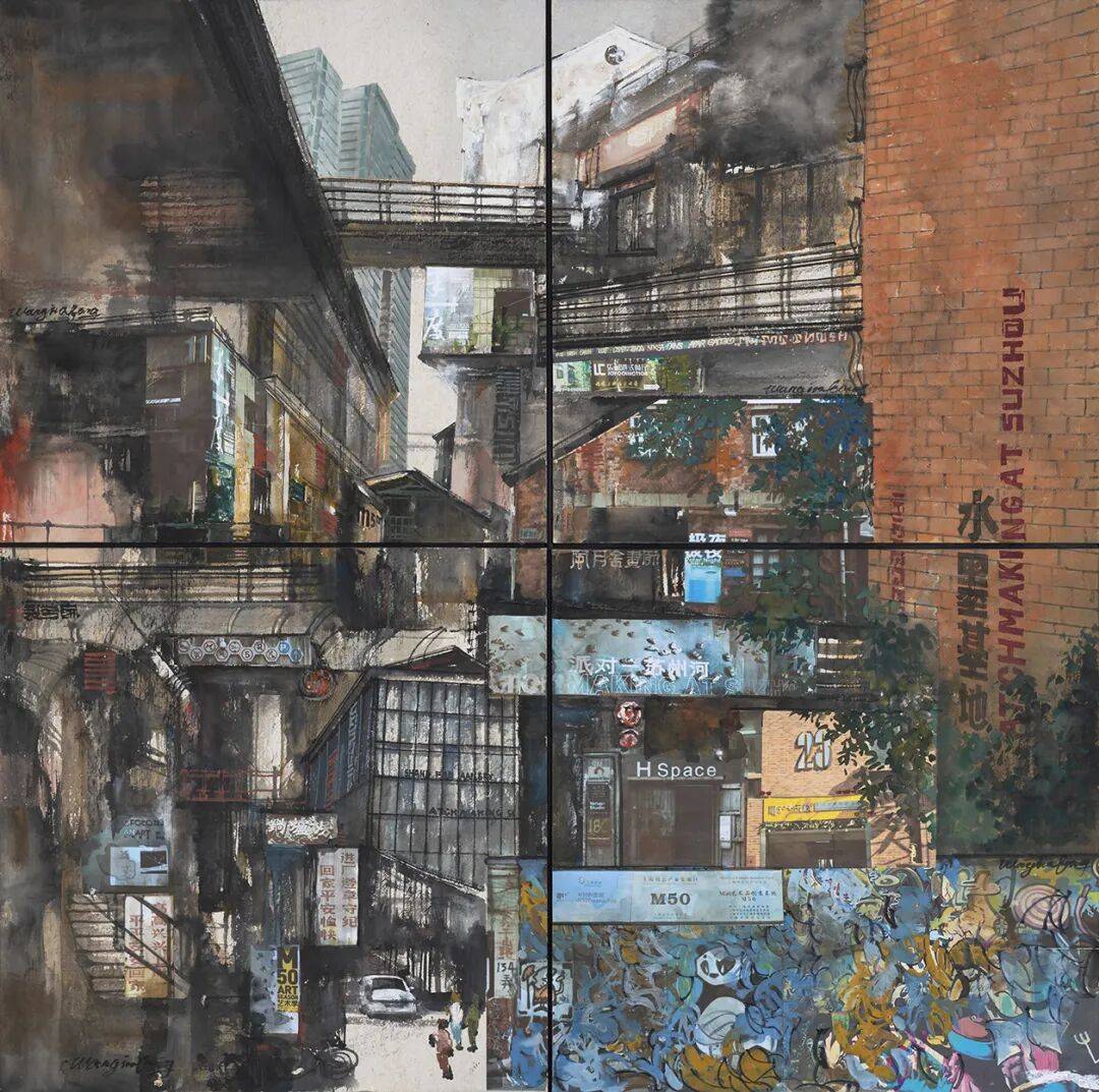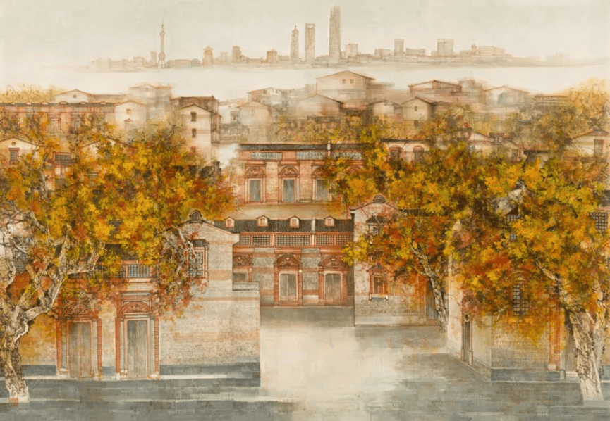 汪家芳的艺术道路,恰如黄浦江的轨迹——发源于传统的群山,流经城市的腹地,最终面向广阔的江海。作为土生土长的上海画家,他的创作始终与这座城市的发展同频共振。从华东师范大学艺术系的课堂,到顾翼、苏春生先生的师承;从对宋元山水的临摹研习,到对现代都市的深情描绘,他的艺术历程见证了一个画家如何将个人心象、地域文化、民族传统与时代命题进行有机化合。