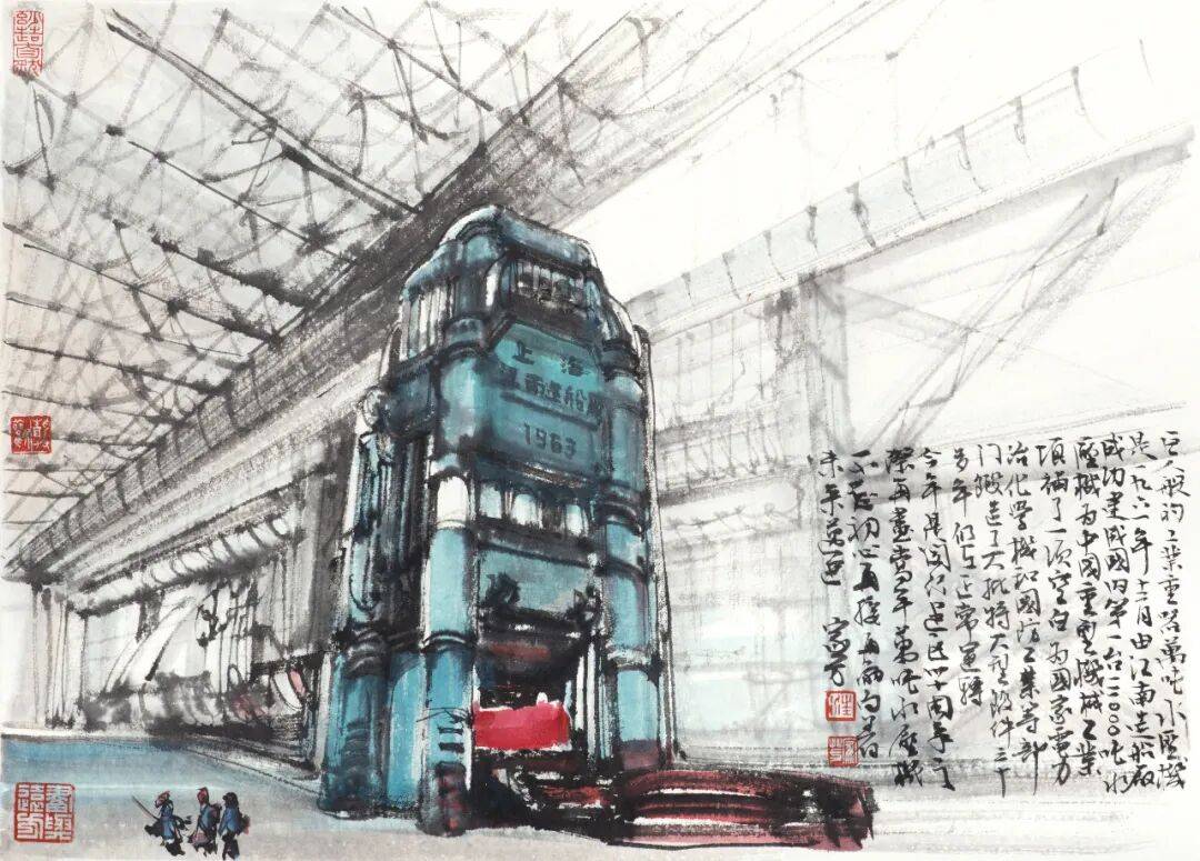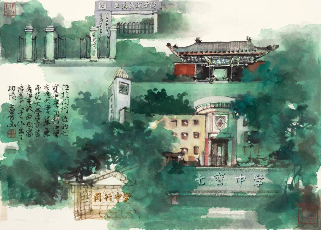 上海市闵行区海派艺术馆常务副馆长陈屹:他其实选择了有上百处闵行的景去创作、去写生,最后呈现的是近20幅左右。而且在这个展览开始前,他新鲜出炉了四件作品,是代表了现在闵行比较新的发展后的一个变化。