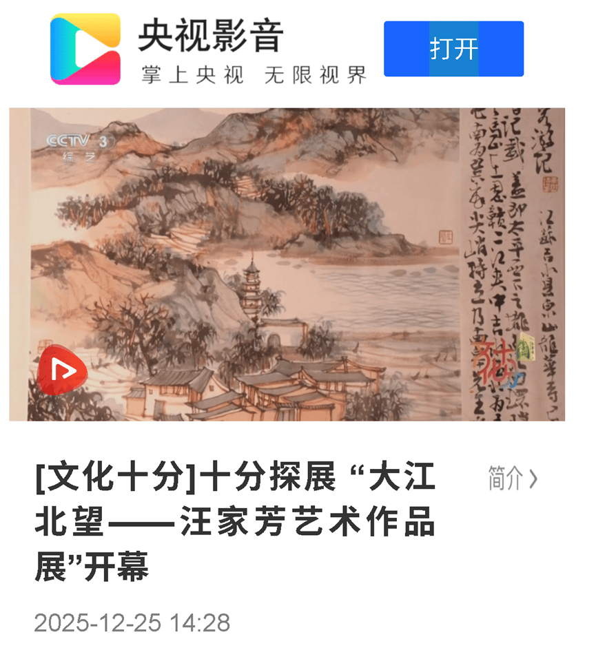 3、央视 十分文化2025-12-25 大江北望--- 汪家芳艺术作品展”开幕